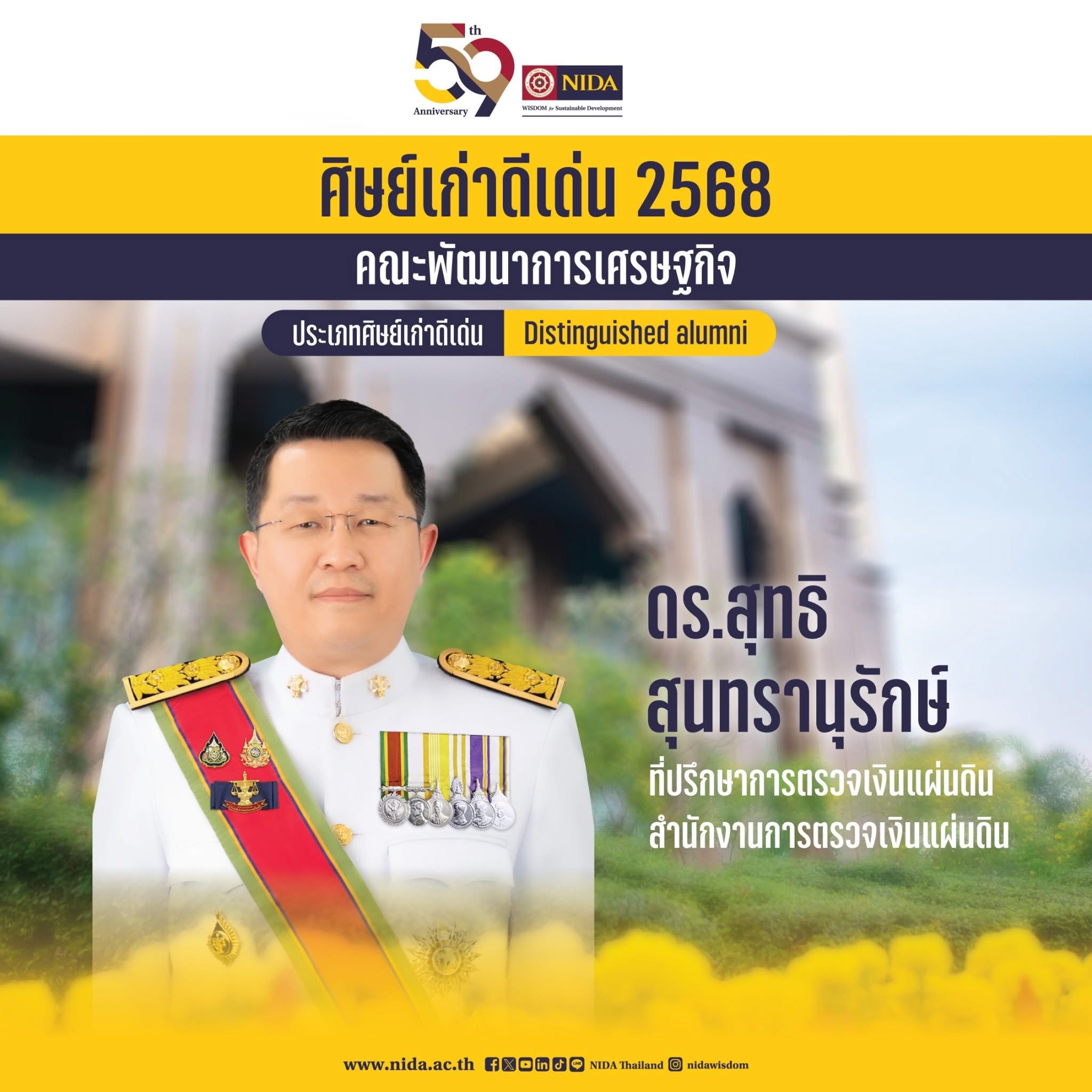 คณะพัฒนาการเศรษฐกิจ ขอแสดงความยินดีแด่ ดร.สุทธิ สุนทรานุรักษ์ ศิษย์เก่าคณะพัฒนาการเศรษฐกิจ ที่ได้รับรางวัล “ศิษย์เก่าดีเด่น”