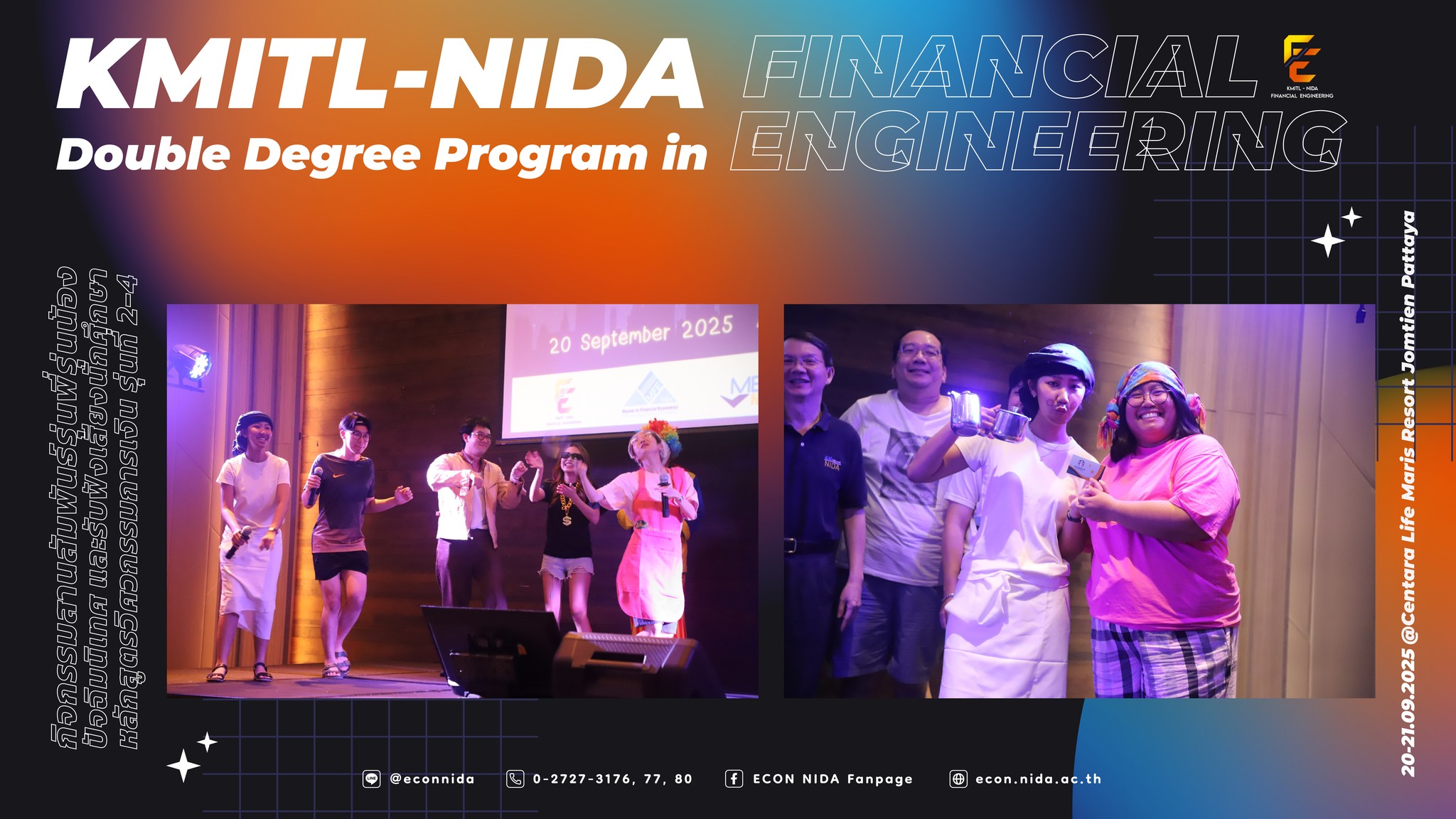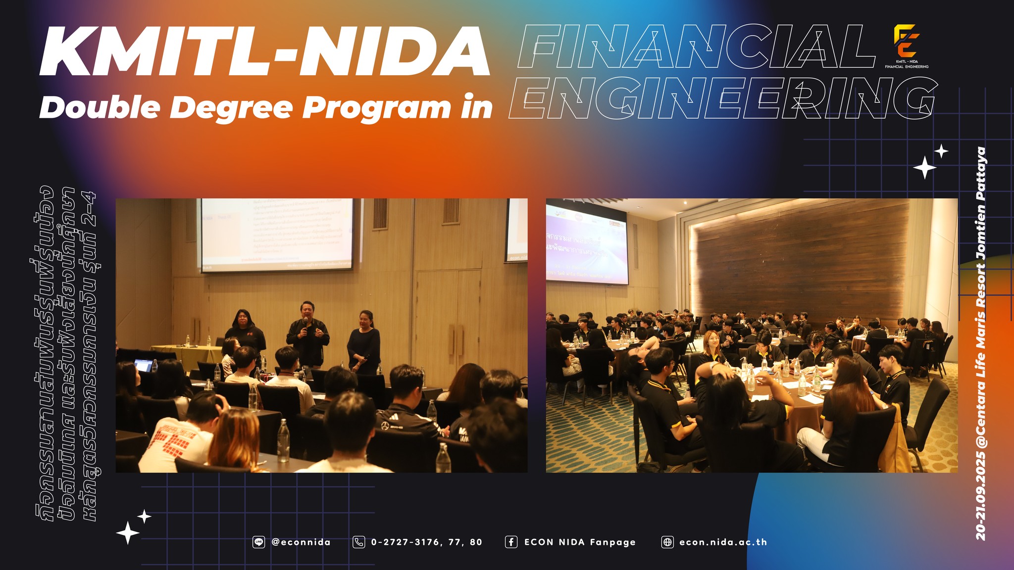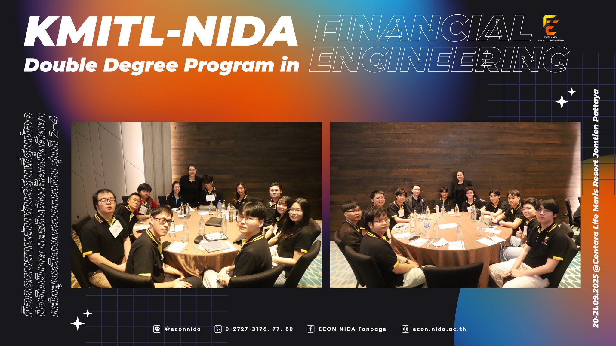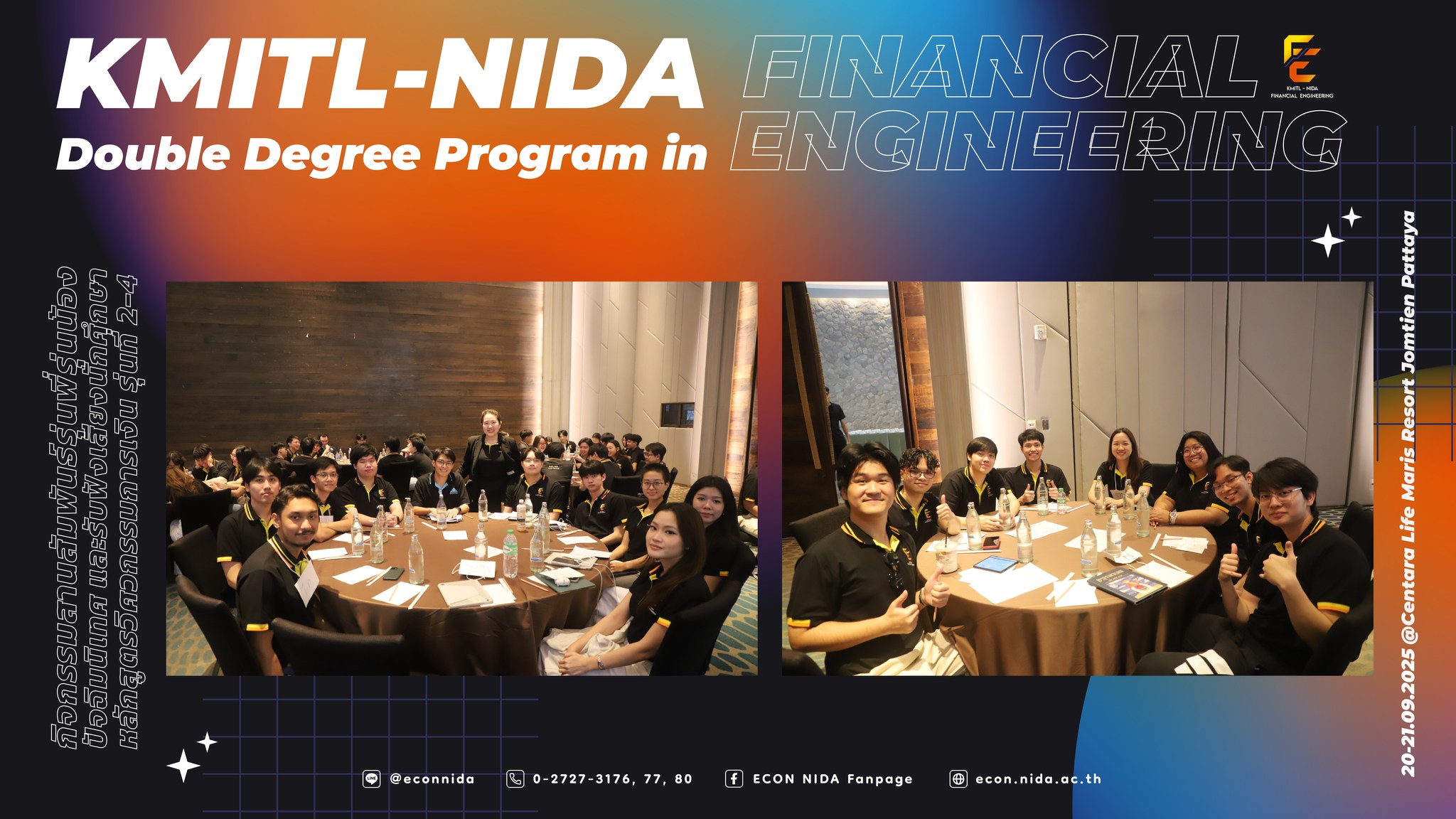 💙🧡บรรยากาศ กิจกรรมสานสัมพันธ์รุ่นพี่รุ่นน้อง ปัจฉิมนิเทศ และรับฟังเสียงนักศึกษาของหลักสูตรวิศวกรรมการเงิน รุ่นที่ 2-4 ระหว่างวันที่ 20-21 กันยายน 2568 ณ โรงแรม Centara Life Maris Resort Jomtien จังหวัดชลบุรี