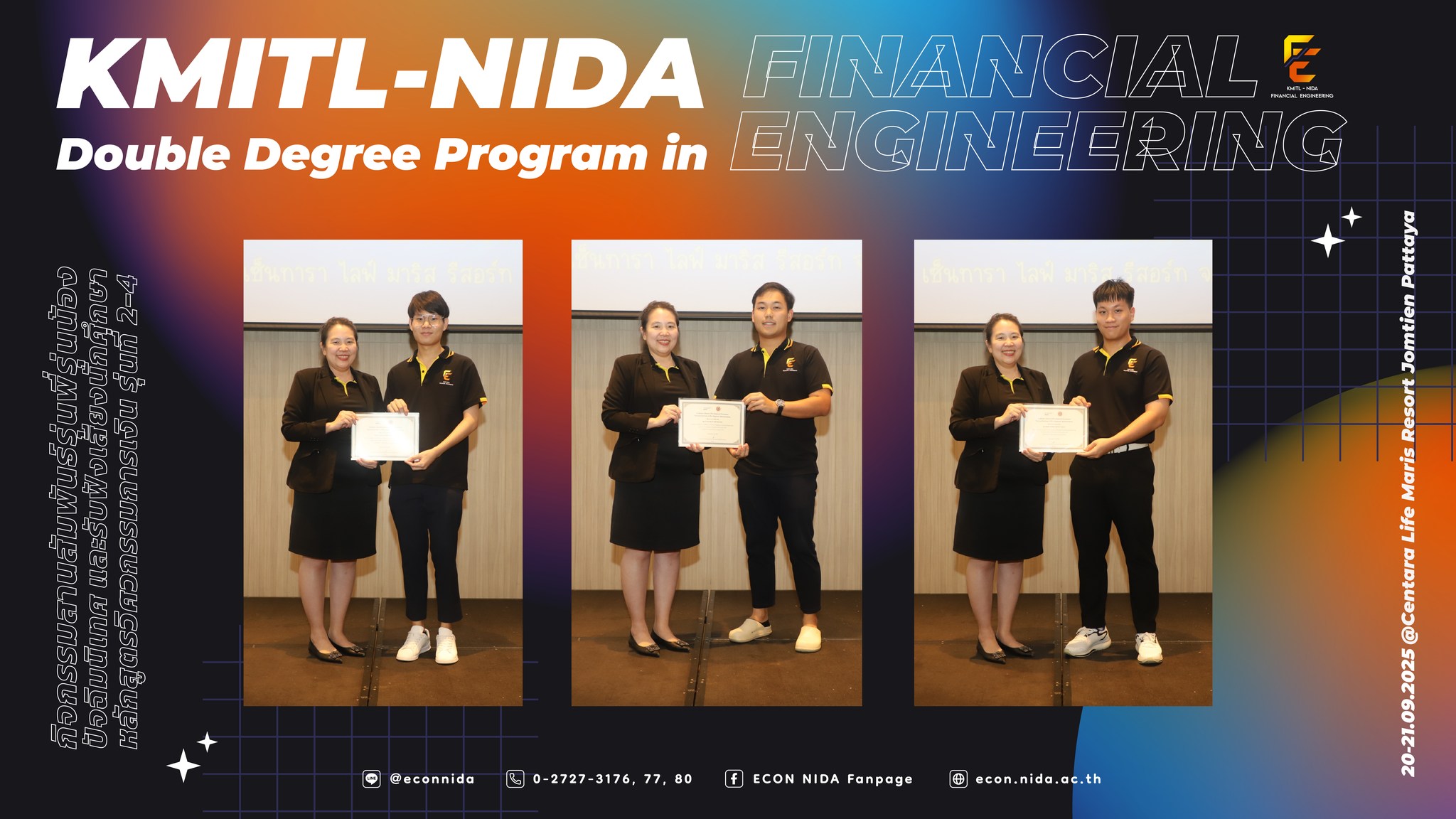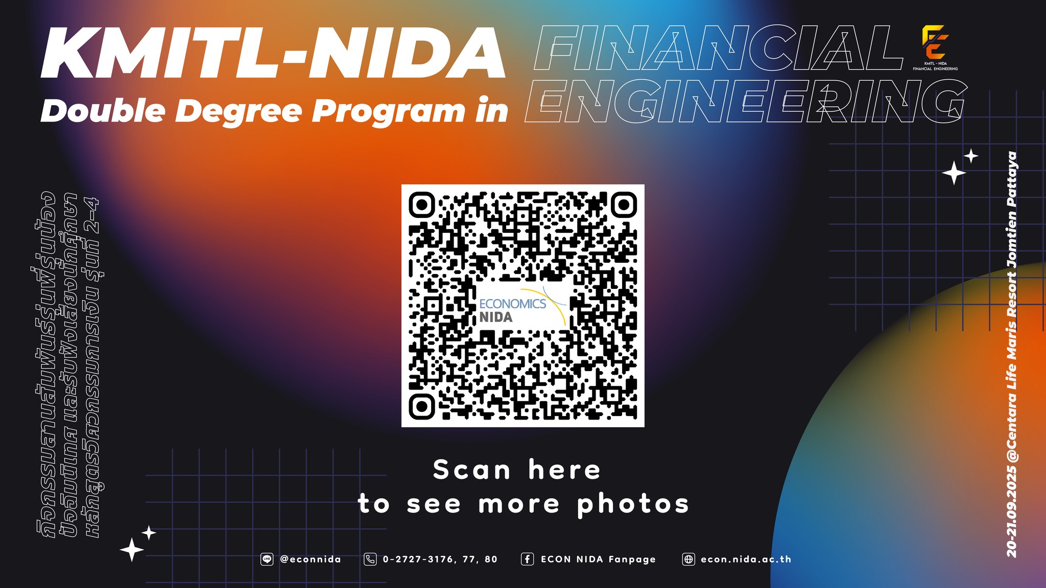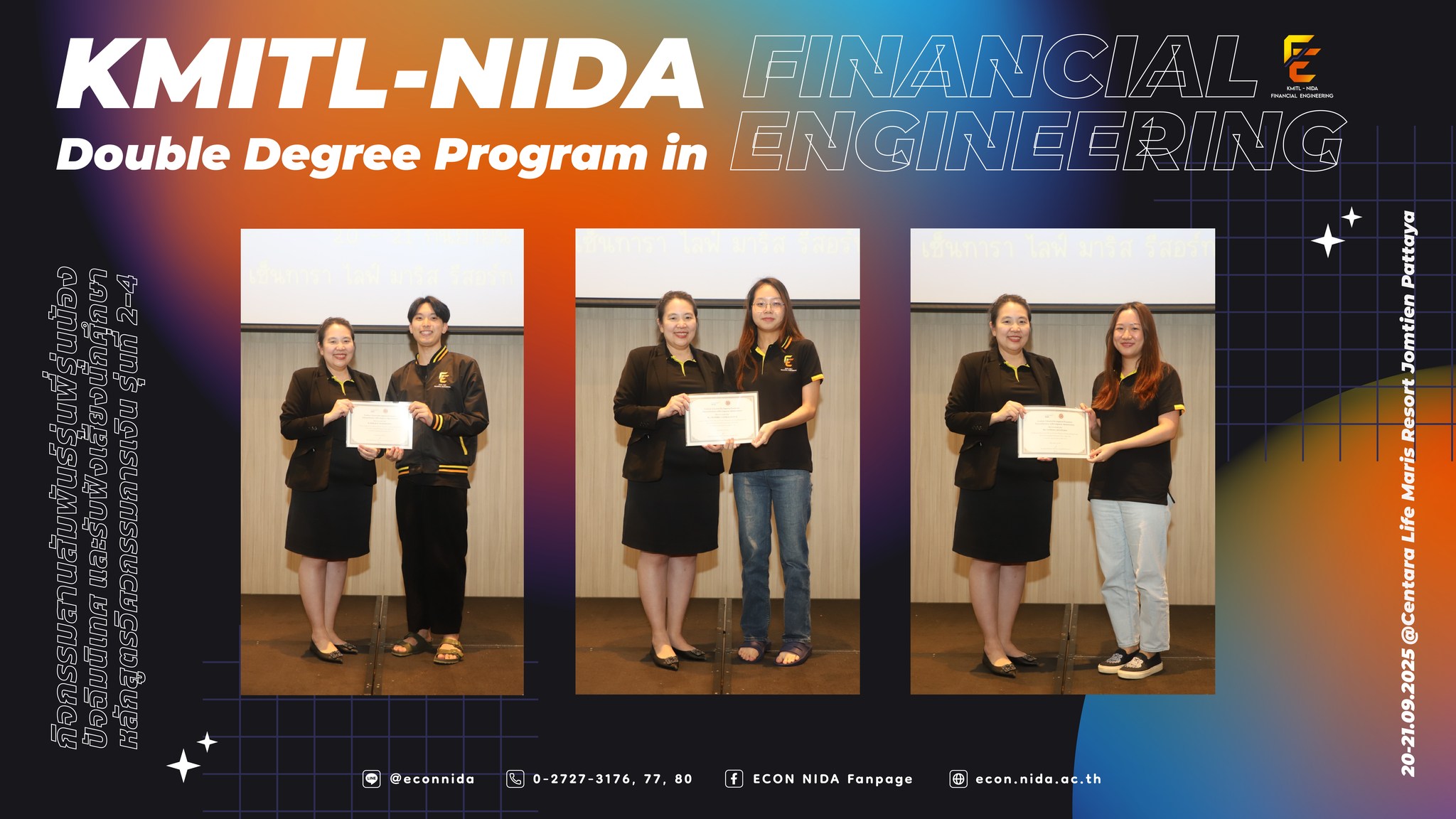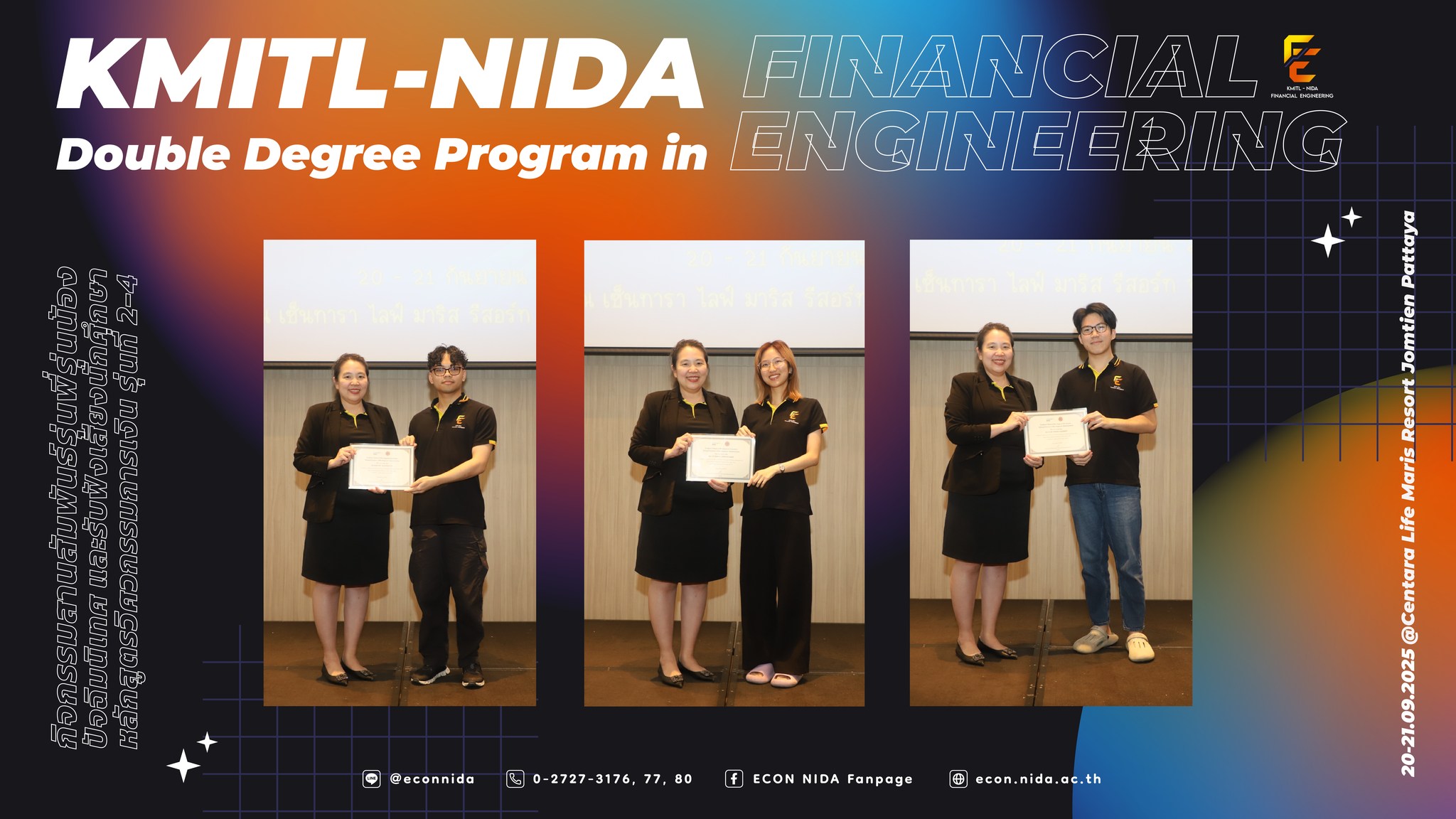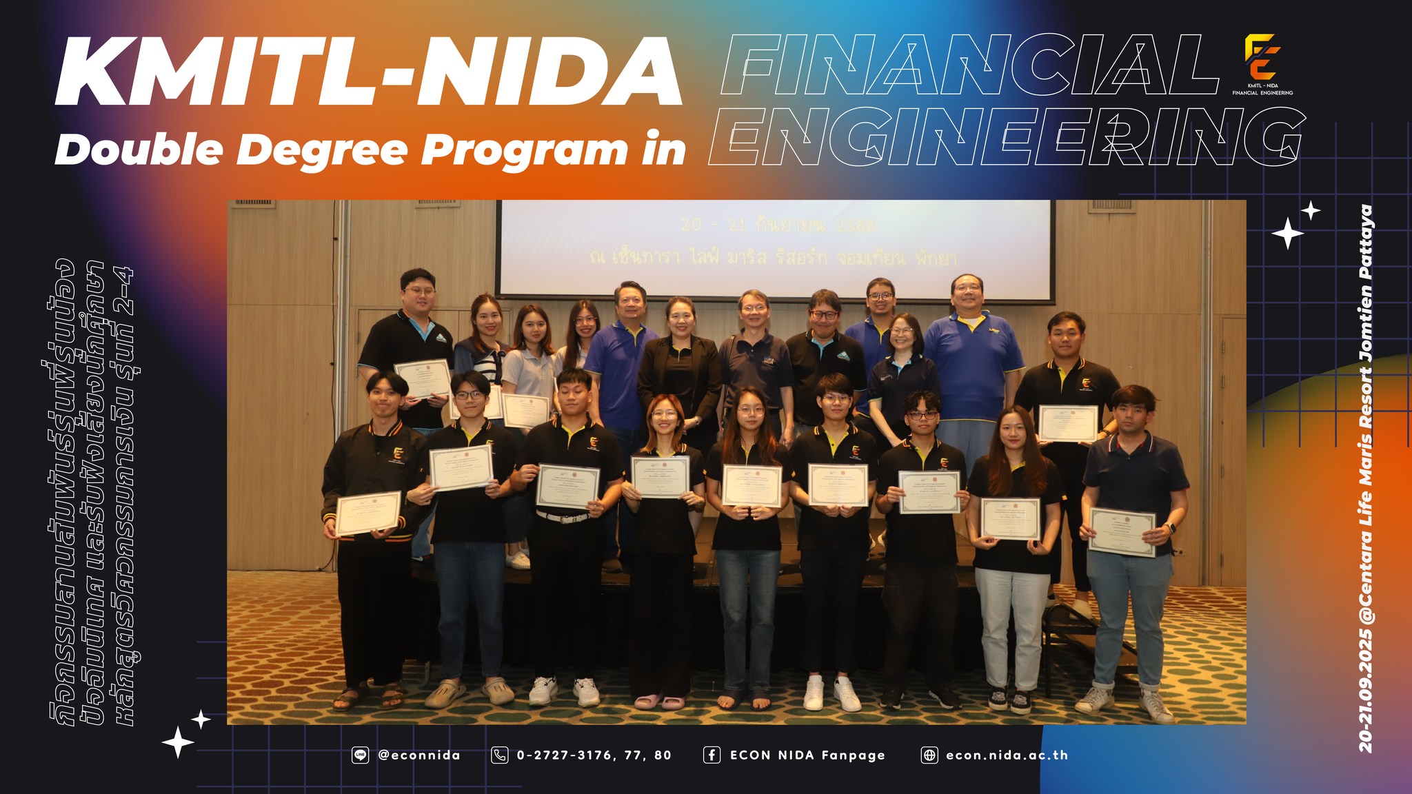 ขอขอบพระคุณทีมคณาจารย์จากคณะพัฒนาการเศรษฐกิจ นิด้า & คณะวิศวกรรมศาสตร์ สจล. ทีมวิทยากร ทีมเจ้าหน้าที่ และนักศึกษาหลักสูตรวิศวกรรมการเงิน รุ่นที่ 2-4 ทุกคน ที่ช่วยกันสร้างบรรยากาศอบอุ่น เต็มไปด้วยรอยยิ้ม ความสนุกสนาน และความทรงจำดี ๆ ตลอด 2 วัน แล้วพบกันใหม่ในกิจกรรมต่อไป